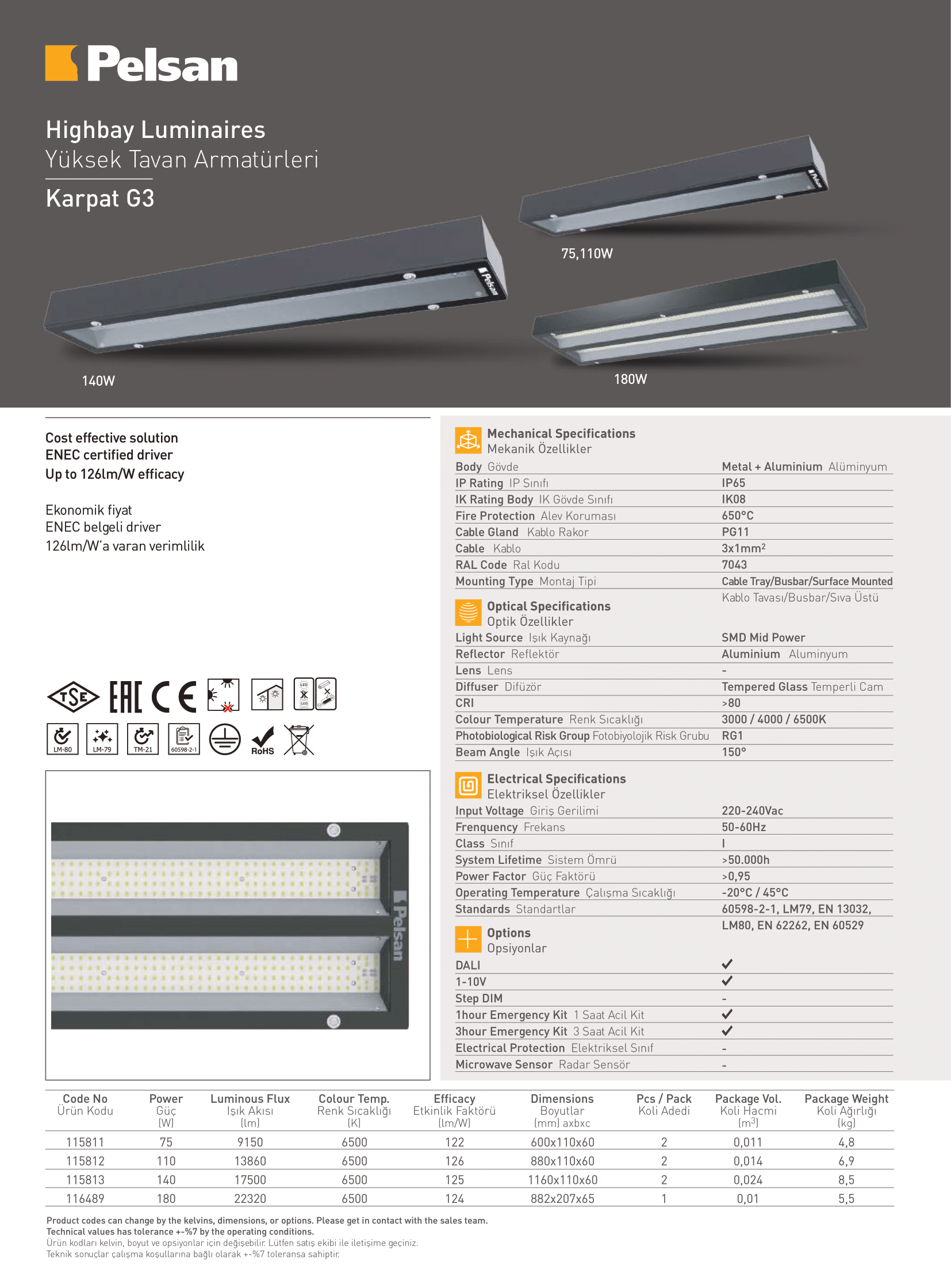 Pelsan Karpat 75 Watt 6500k Led Yüksek Tavan Armatür G3 115811